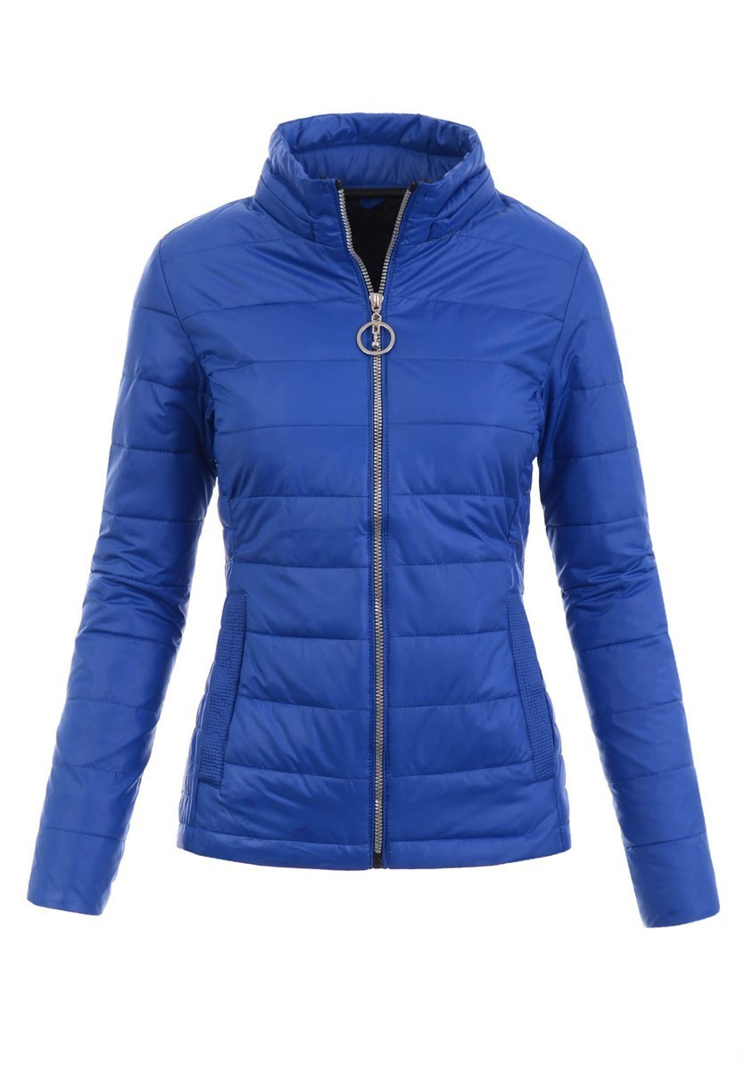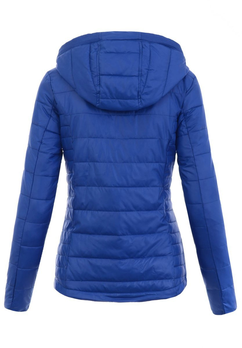 Rewelacyjna, damska kurtka przejściowa w kolorze ciemno niebieskim, kobaltowym. Kurtka zapinana z przodu na zamek błyskawiczny w kolorze srebrnym. Kurtka posiada odpinany kaptur który zapewnia ciepło w chłodne dni. Na wysokości tali kurtka posiada dwie wygodne kieszenie, na napy. Oryginalności kurtce dodają modne przeszycia. Kurteczka super sprawdzi się jako przejściowa kurtka sportowa a także doskonale skomponuje się z wykwintną stylizacją wiosenno-jesienną. Damska kurtka została wykonana z najwyższej jakości materiałów.